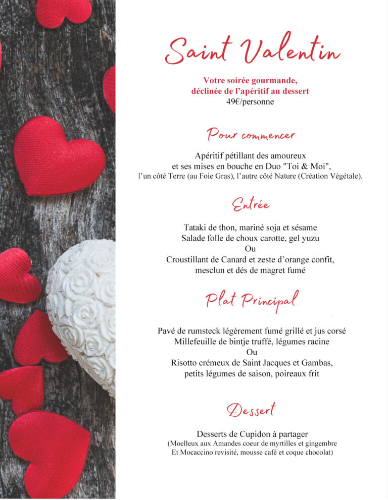Comme chaque année, notre équipe à imaginé un savoureux menu de Saint Valentin,
